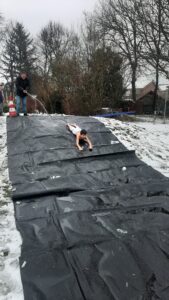 Dat bleek een goede aanpak. Twee kinderen waagden onder luid applaus de roetsj in zwembroek. Wat een bikkels. Anderen roetsjten met kleren aan ook bikkels want natte kleren droog je niet even…
